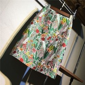 春ステッチジャカード花柄刺繍ミドル丈Aラインスカートレディースウエストシックスカートスタイルファルダス スプリング 春物