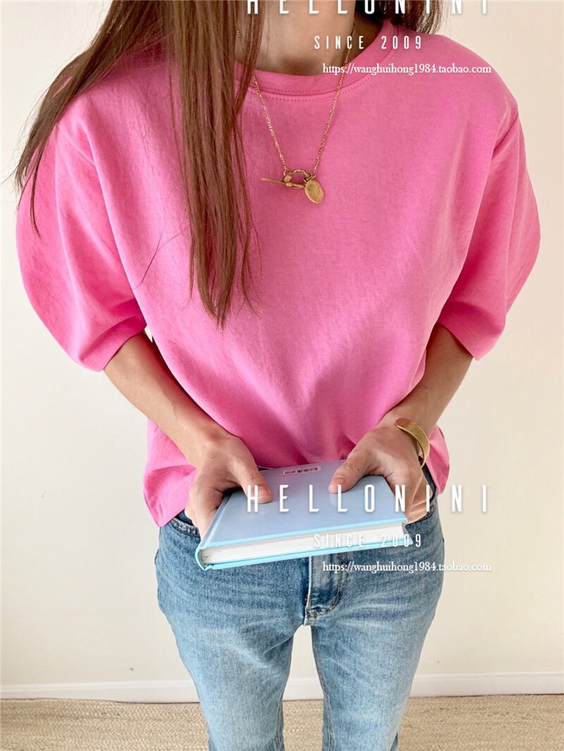 夏 Tシャツ綿弾性服オーバーサイズトップスピンク白 Tシャツルーズマキシ半袖 Tシャツ ショート ホワイト コットン ハーフスリーブ エラスティック 伸縮 サマー 夏物