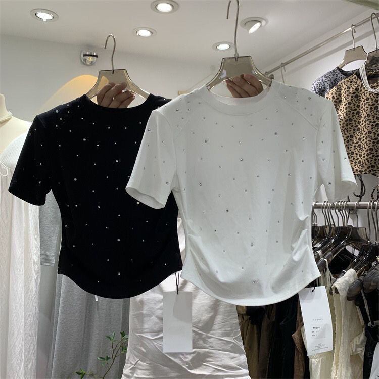 グラフィック Tシャツ センス ダイヤモンド ラウンドネック ショルダー フィット 多用途 半袖 Tシャツ ホワイト コットン Tシャツ グランジ トップス ショート ハーフスリーブ Oネック