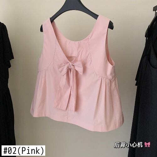 オフィスレディ O ネック スリム ノースリーブ ベスト リボン シック V バックレス シャツ デ モーダ ブラウス タンクトップ シャツ Oネック 会社 学校 通勤や通学にも