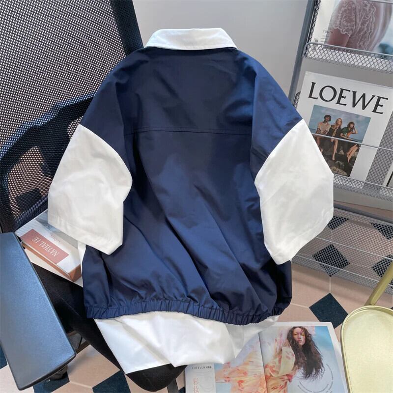 コントラスト偽ツーピースカーゴシャツ男性半袖ブラウスデモーダシャツトップ ショート ハーフスリーブ