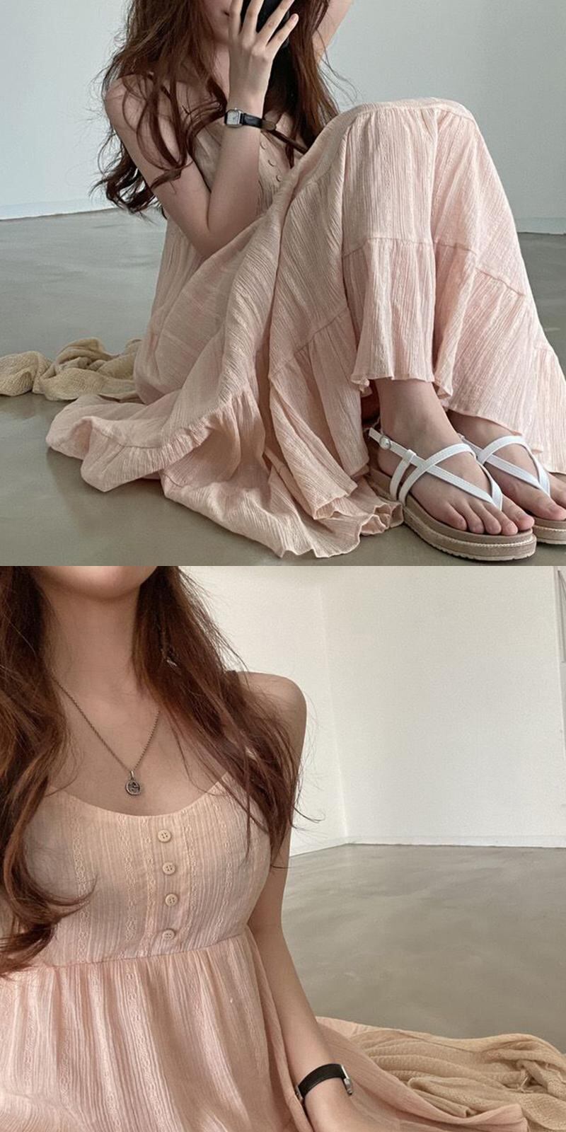 ルーズピンクキャミソールドレス Vestido Y2k ロングフリルサマードレスプリーツ誕生日ケーキセクシービーチ 夏物