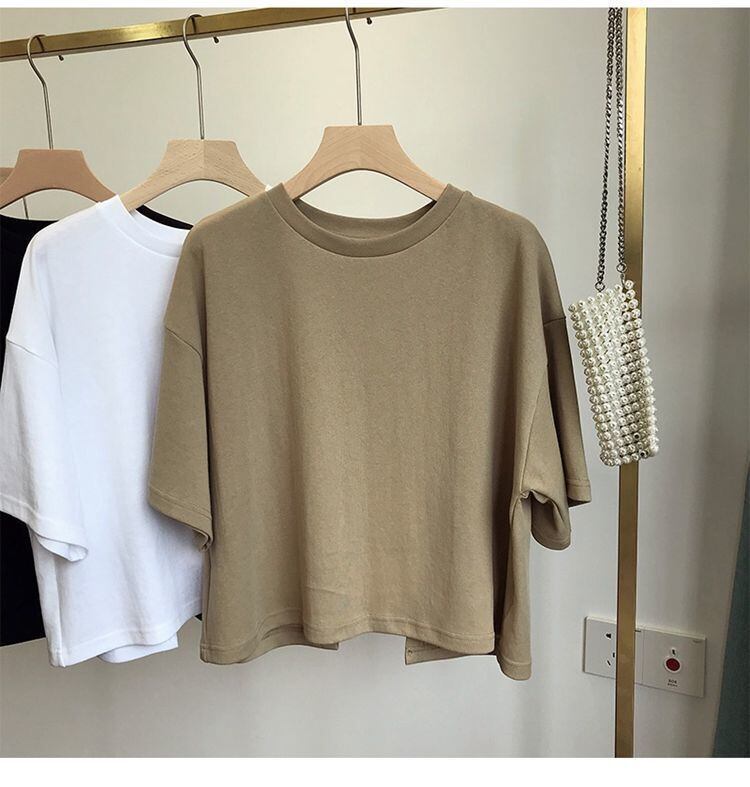 夏背中開いた Tシャツラウンドネックルーズ甘いスパイシー風半袖クロップトップス Tシャツ 大人ガーリー スウィート キュート カジュアル サマー 夏物 Oネック