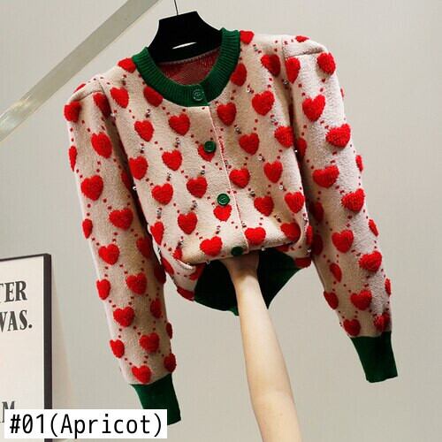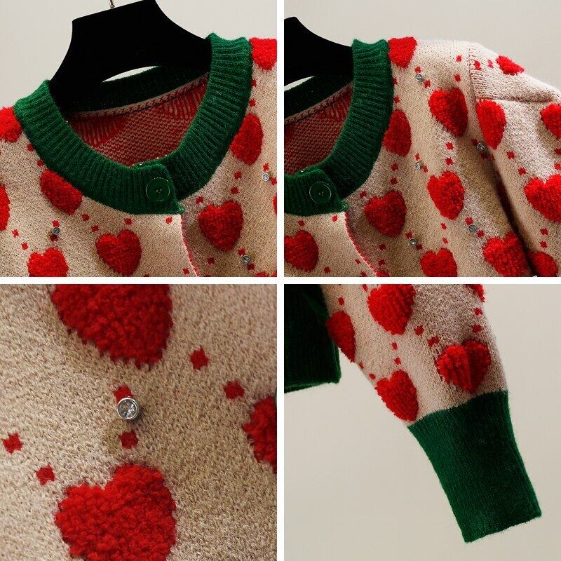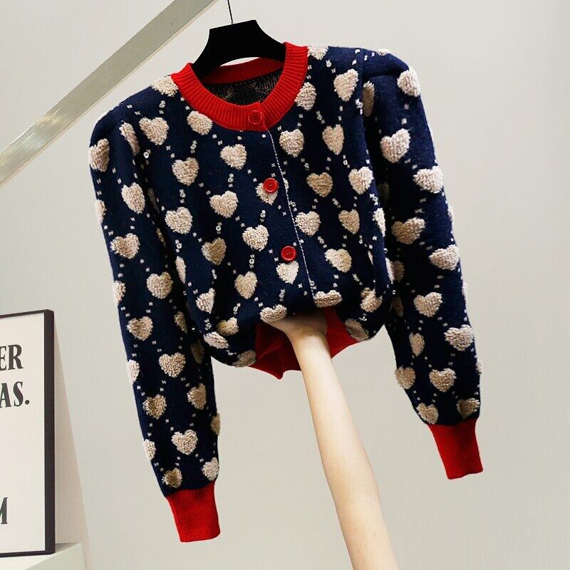 セータービーズハートジャカードセータークロップカーディガンセンストップフェアリーコア美学グランジコート
