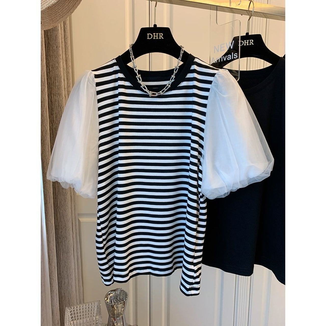 Ropa 美的グラフィック Tシャツ ルーズストライプ Tシャツ コットン 多用途 半袖 トップスリーブ メッシュ Tシャツ ブラック ホワイト ショート ハーフスリーブ