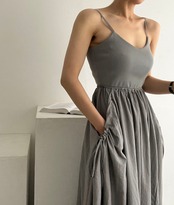 ビッグスイング U ネックプリーツ巾着黒キャミソールドレスセクシーノースリーブマキシドレス Vestidos デ Y2k ローブ ブラック
