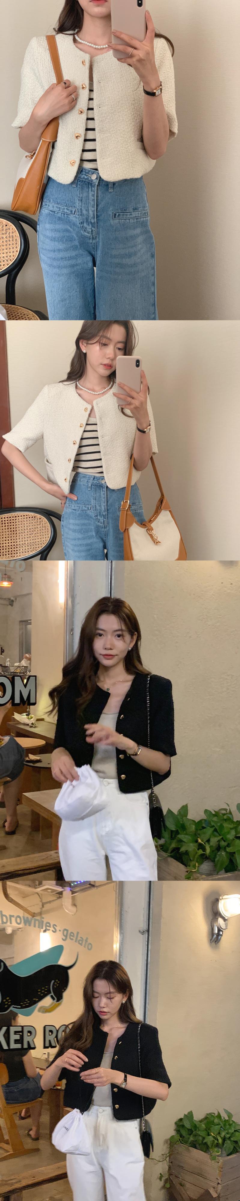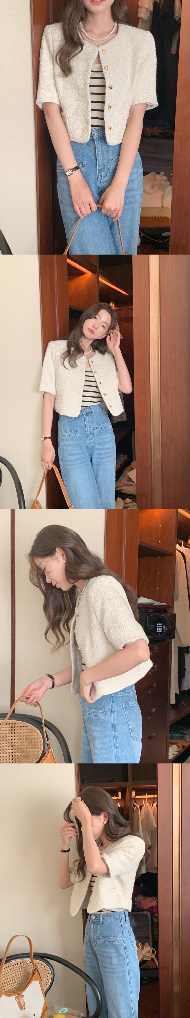 O ネックラブハートボタンルーズニッチ半袖ツイードジャケットサマーカーディガンチャケータスーツコート ショート ハーフスリーブ 夏物