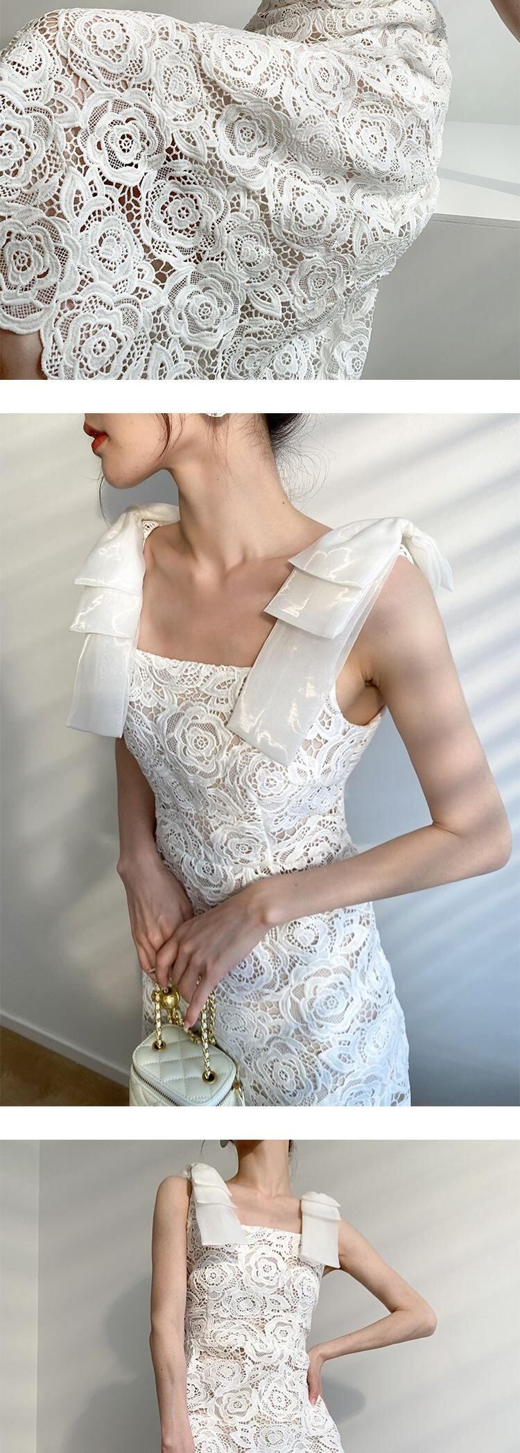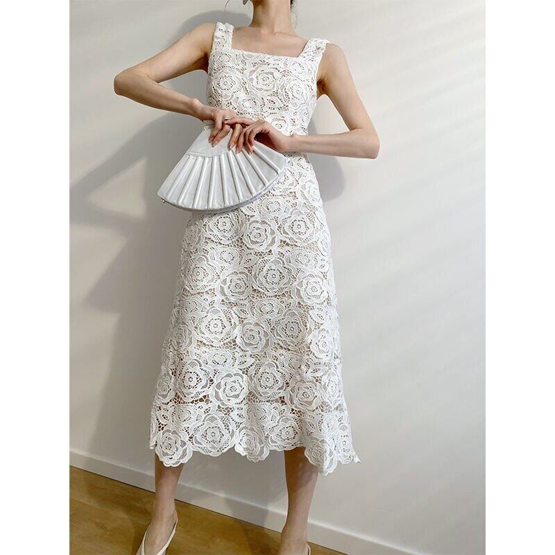 セクシー気質キャミソールホワイトレースドレス Vestidos デ刺繍ノースリーブ A ラインセクシードレス Mid レッド Aライン