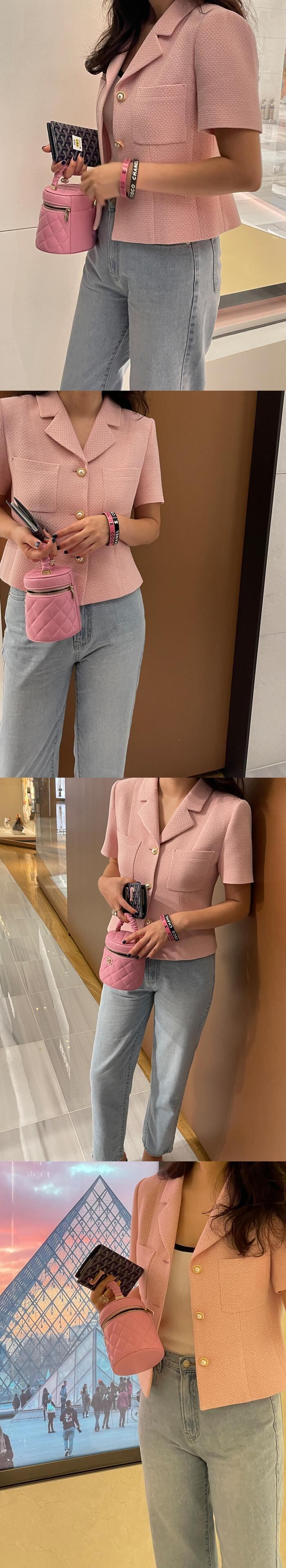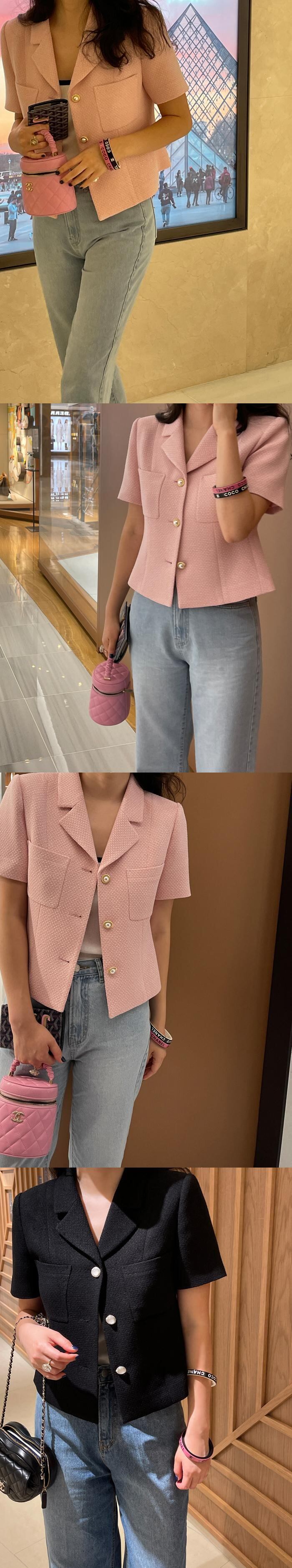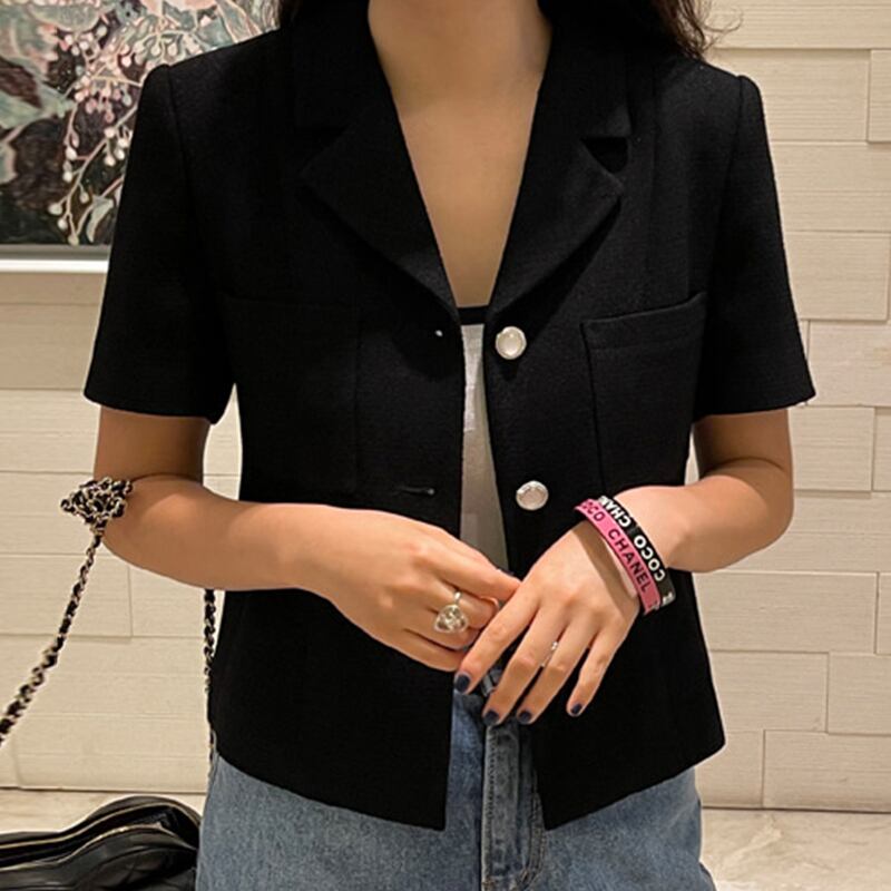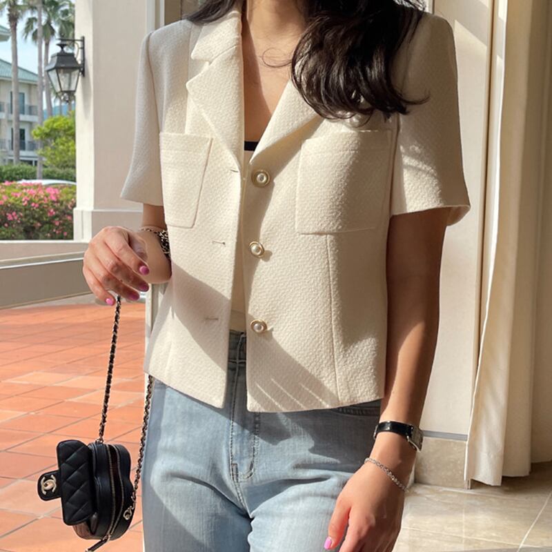 気質ホワイトツイードジャケット半袖カーディガンノッチサマー原宿コートスーツjaquetasチャケータ ショート ハーフスリーブ かわいい 夏物