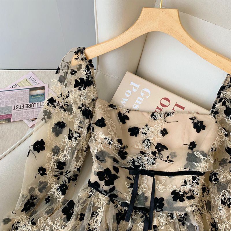 ブラウスレトロ花シック夏フレンチスタイル原宿フィット作物入札トップスレース かわいい サマー 夏物 花柄