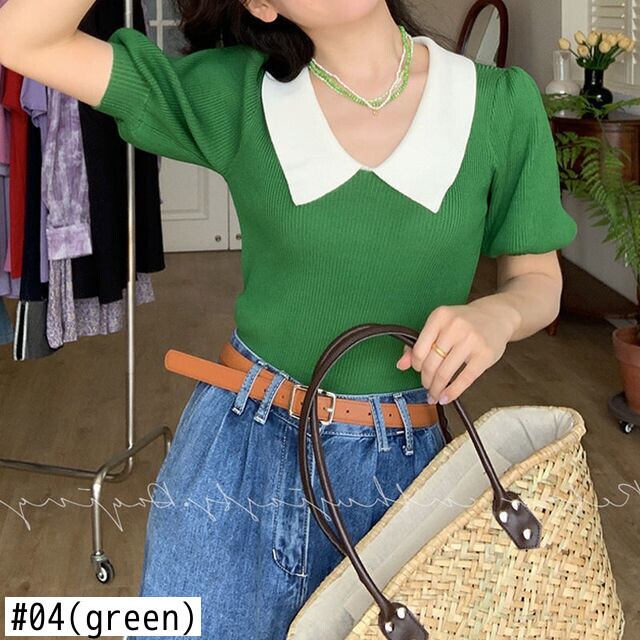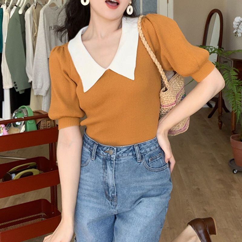 シャツアイスニットシャツ夏クロップトップ半袖 Tシャツパフドールカラーグラフィック Tシャツセーター ショート ハーフスリーブ サマー 夏物 シルク