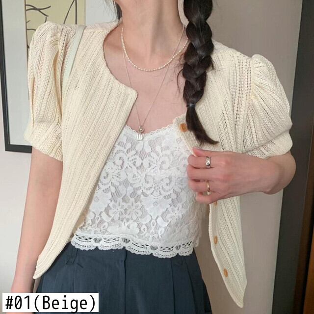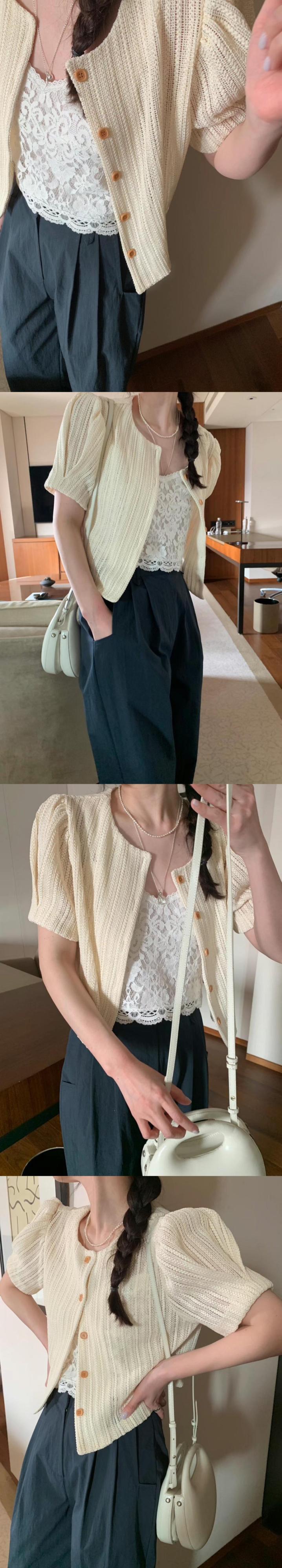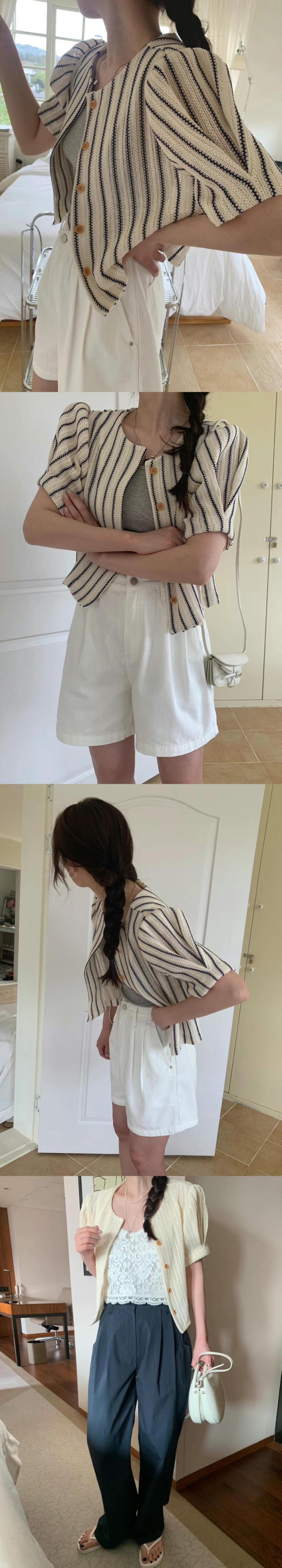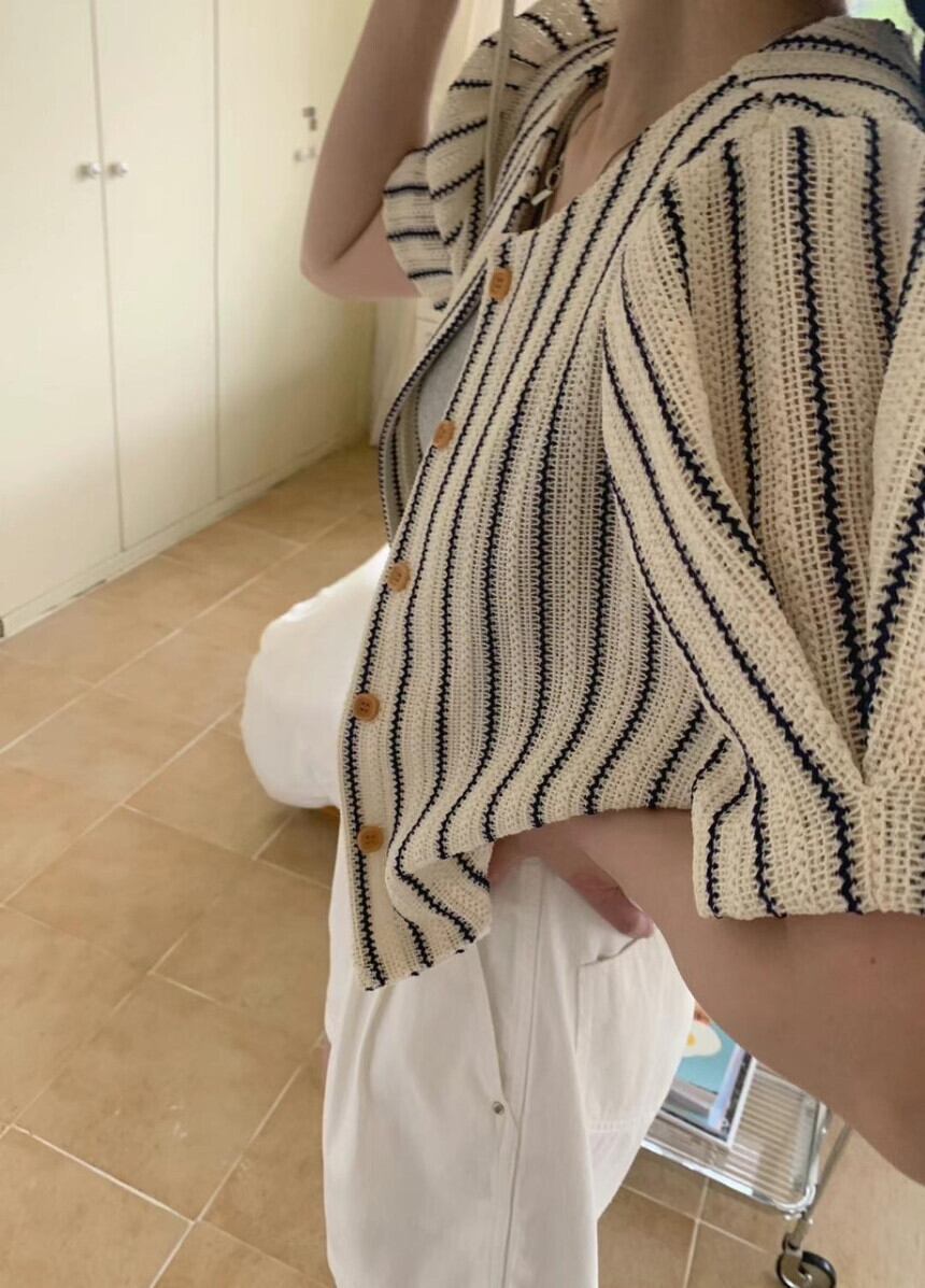 半袖シックツイード コート ストライプ カーディガン パフ ラウンドネック シングルブレスト ジャケット サマー スーツ Chaquetas Jaquetas Y2k ショート ハーフスリーブ 夏物 Oネック