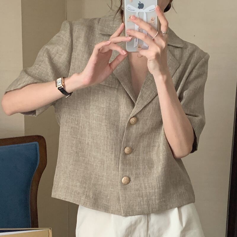 気質カーディガンサマースーツノッチクロップトップ半袖コートスタイル Chaquetas ツイードジャケット ショート ハーフスリーブ 夏物