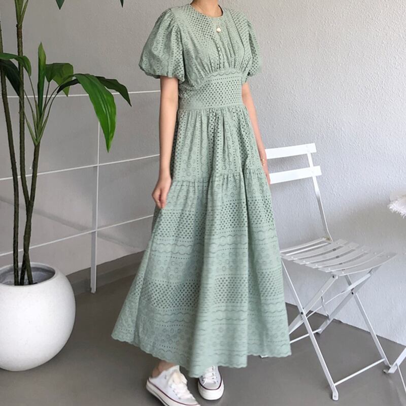 ラウンドネックジャカードレースカットアウトウエスト大きスイング半袖夏 Vestidos De es ホワイトドレス ショート ハーフスリーブ サマー 夏物 Oネック