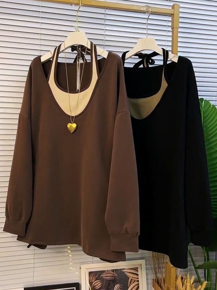 ホルター Camisetas Y2k 特大パーカー偽 2 長袖 Sudaderas トレーナー美的 T シャツトップ ロング Tシャツ