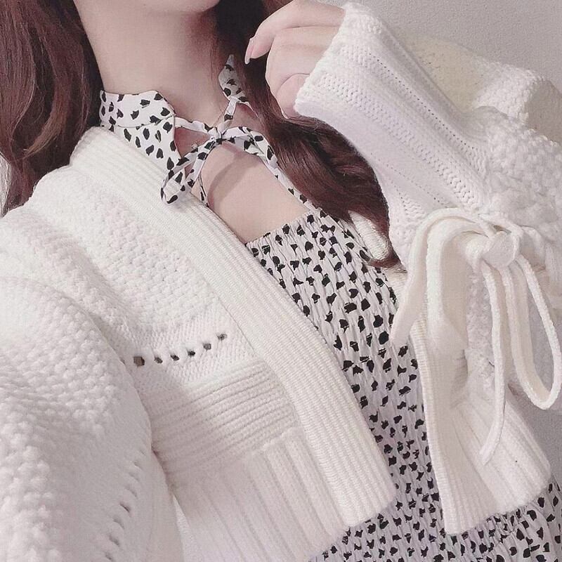 レースアップ長袖ショートカーディガン秋ソリッド中空薄いツイストセーターコートシンプルすべて一致ニットプル ロング オータム 秋物 ソリッドカラー