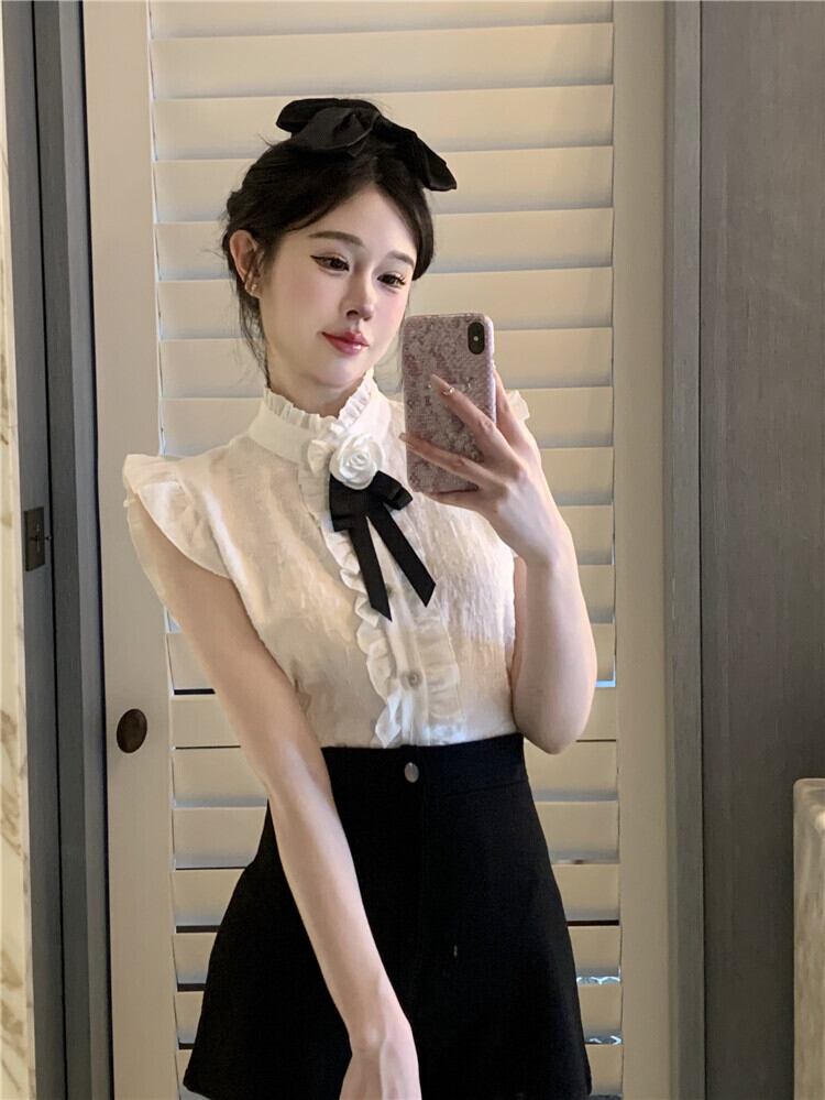 ブラウス宮殿スタイル甘い多用途センス小さタンクトップシャツノースリーブトップフライ花柄シャツ レース 大人ガーリー スウィート キュート カジュアル