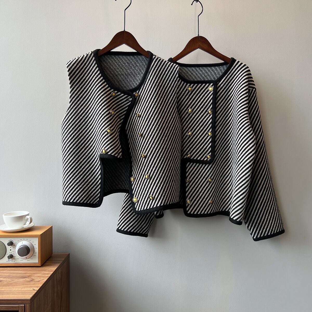 ダブルブレストストライプジャケットノースリーブベストチャケータ Y2k チョッキウールコートキルティングテーラード レッド