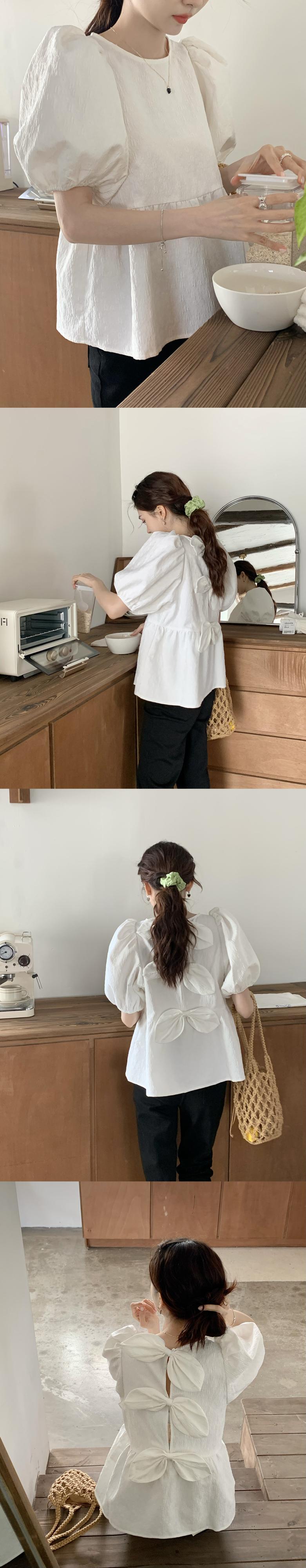 シフォン半袖トップフレンチボウグリーンフローラルブラウスガールデモーダ白シャツビーチドールシャツ ショート ホワイト リボン ハーフスリーブ 花柄