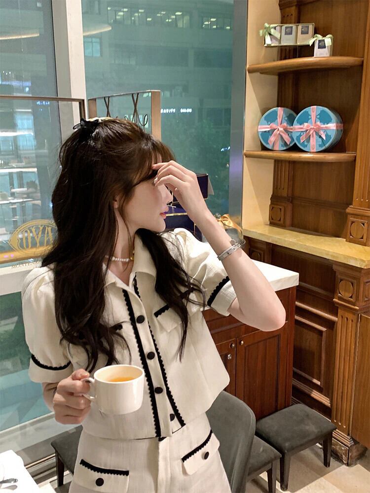 ショートスーツ半袖カーディガンワイドレッグショーツウエスト夏 2 点セット白ブレザー Feminino ジャケット ホワイト ハーフスリーブ サマー 夏物 ブルマー ワイドパンツ