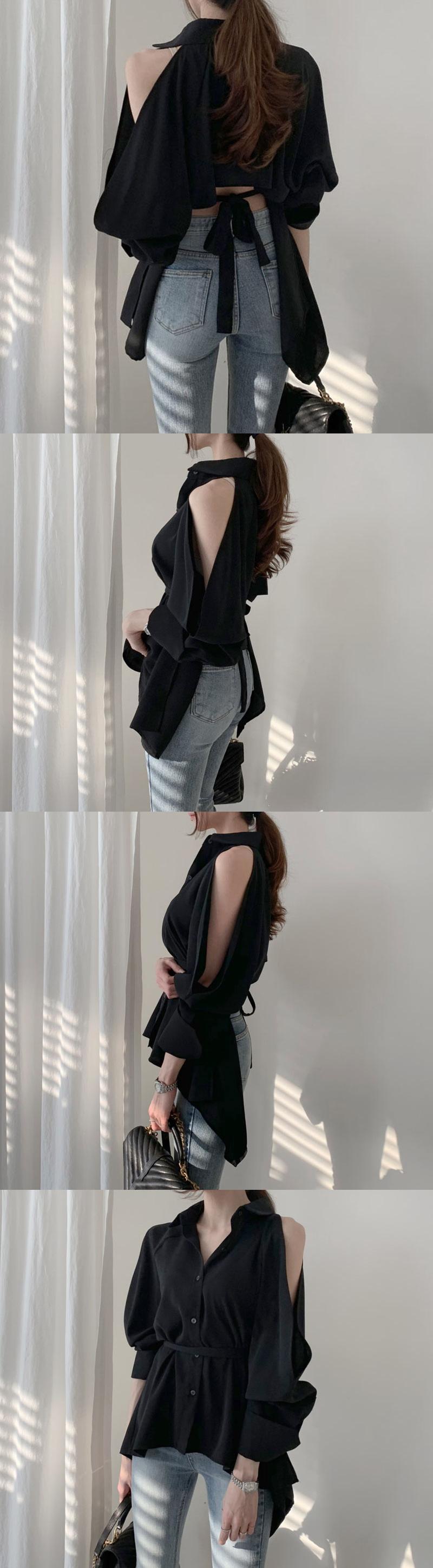 オフショルダー春夏トップスブラウス中空アウトターンダウンカラーシャツ Blusa トップス スプリング 春物 サマー 夏物 ソリッドカラー