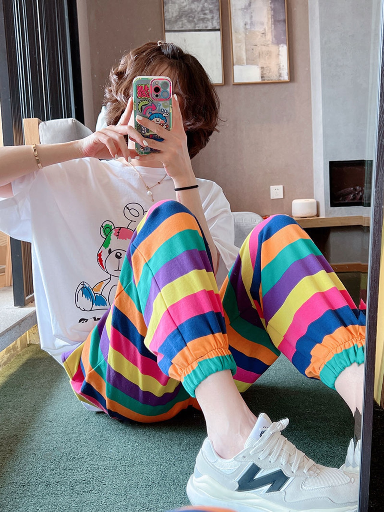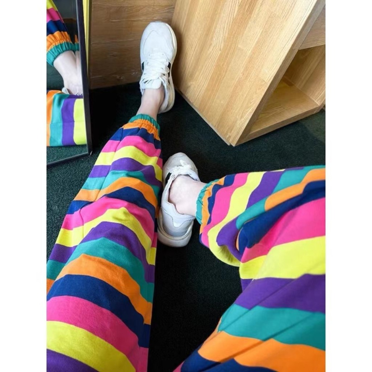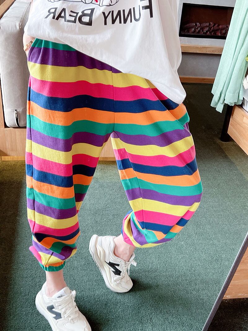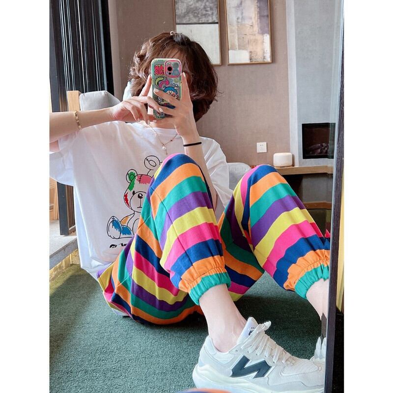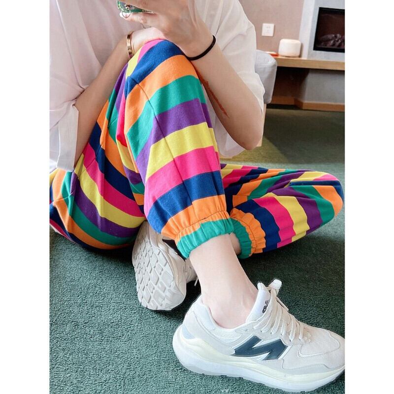 ルーズブルマワイドレッグパンツ Pantalones だぶだぶズボンレインボーストライプハーレムパンツカーゴ Y2k ショーツ ブルマー ワイドパンツ
