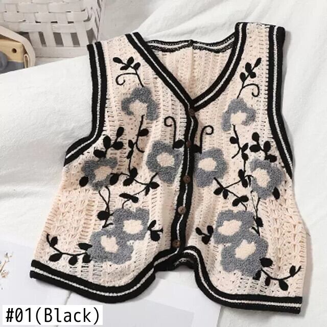 かぎ針編み中空刺繍ニットベストトップ V セーターベスト Colete Feminino Y2k クロップカーディガンコートスリムチャレコ レッド