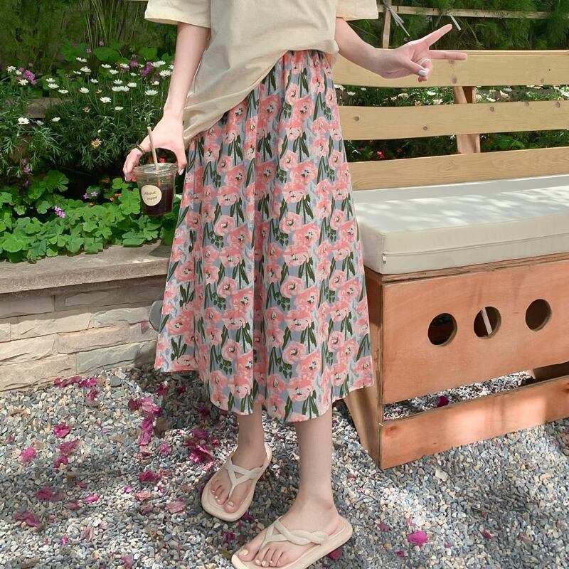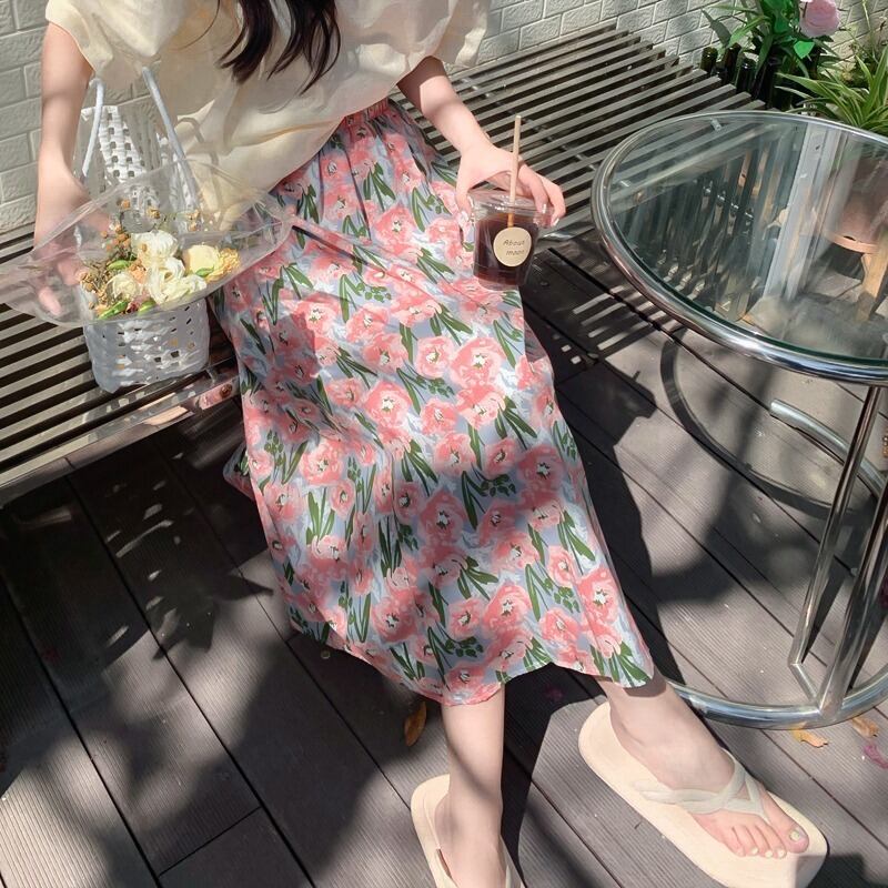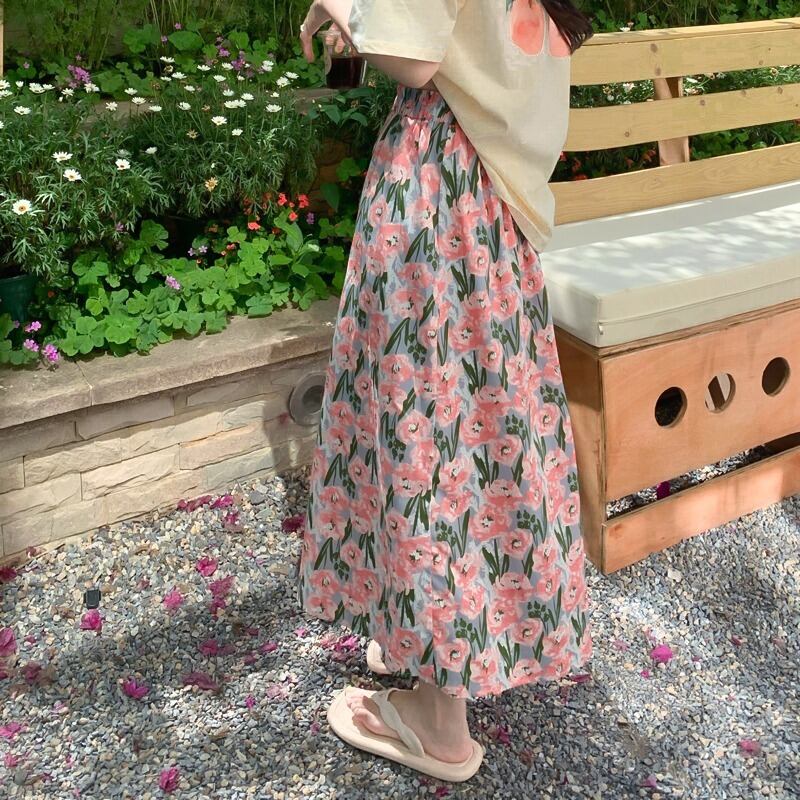 ウエスト気質花柄スカート A ラインロングスカートスタイル Faldas Largas シフォンスカート Y2k Aライン