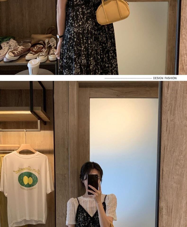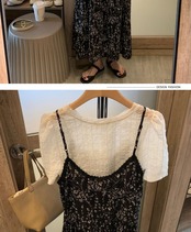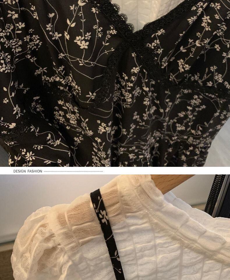 V ネックレース花シフォンサスペンダードレスシック夏優しい甘い O ネックチェック柄半袖シャツ Vestido ショート ハーフスリーブ 大人ガーリー スウィート キュート カジュアル サマー 夏物 花柄 Oネック Vネック