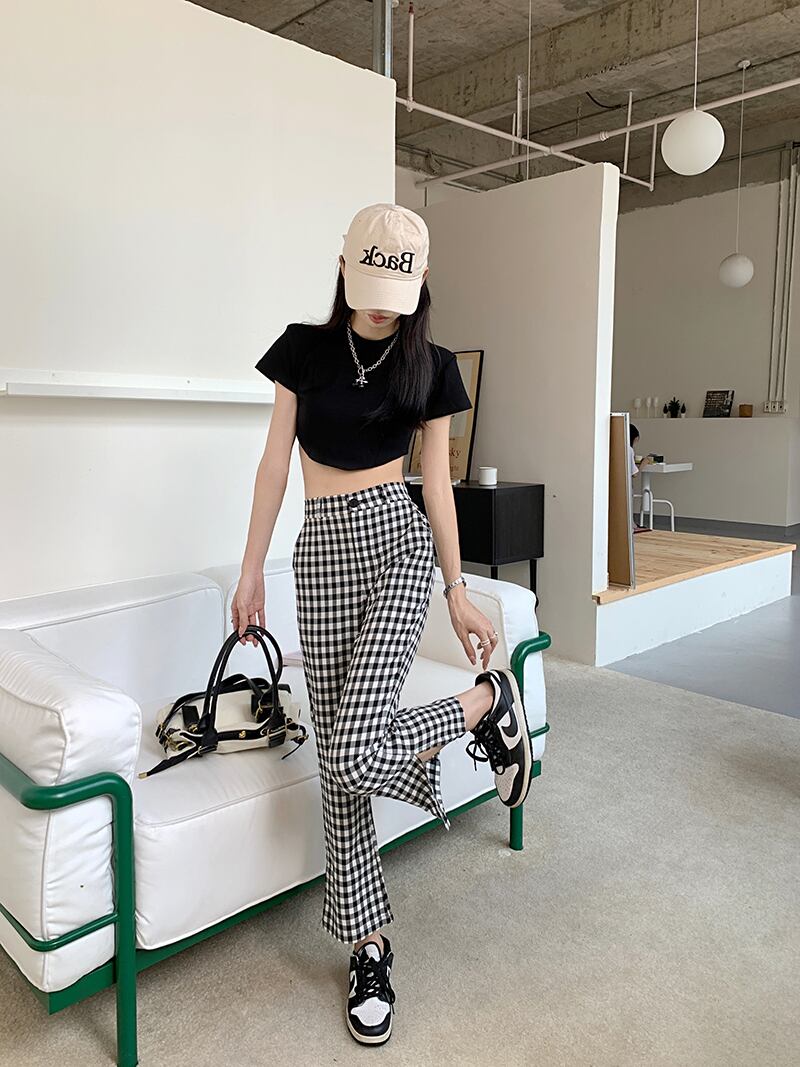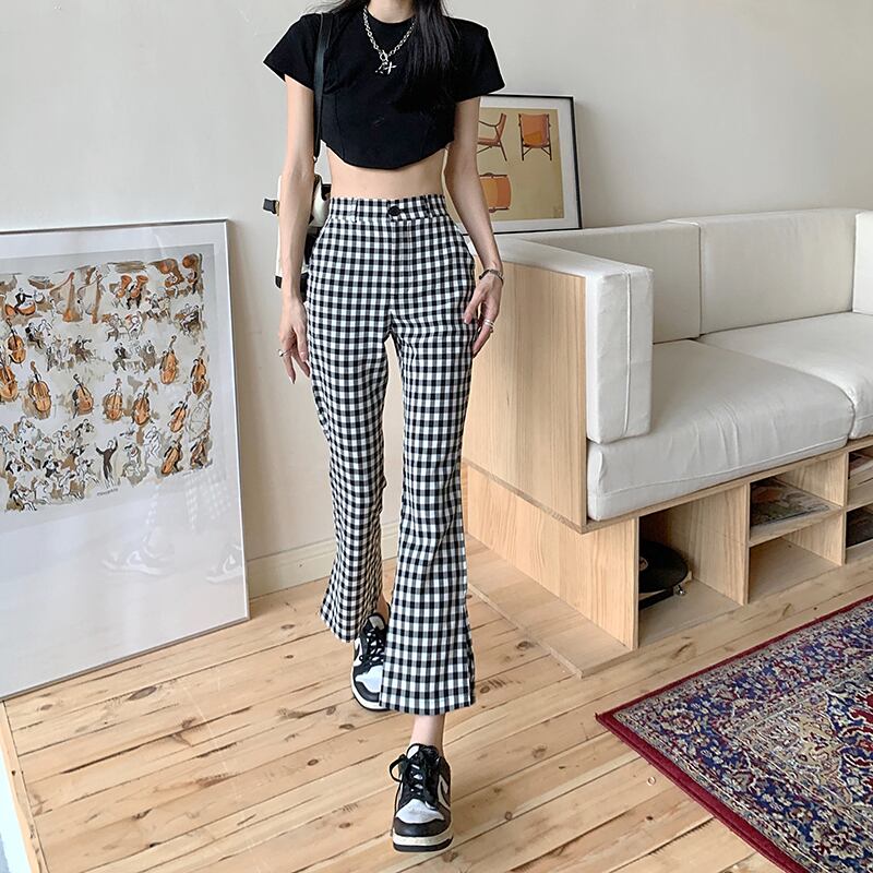 黒、白チェック柄フレアパンツ Pantalones カーゴパンツズボン Y2k スウェットパンツワイドレッグストリート ホワイト ブラック ワイドパンツ