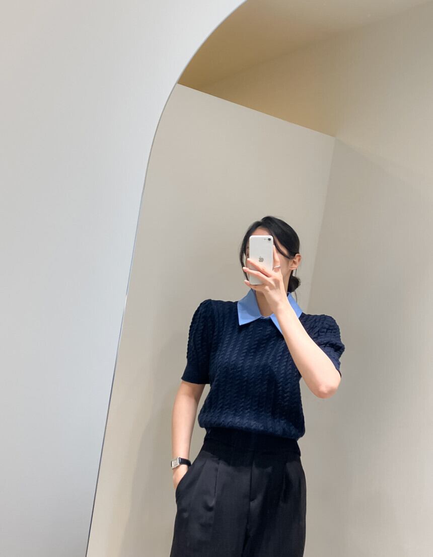 甘いフェイクツーピースバブル半袖ニットツイストセーターシャツジャンパープルトップセーター ショート ハーフスリーブ 大人ガーリー スウィート キュート カジュアル