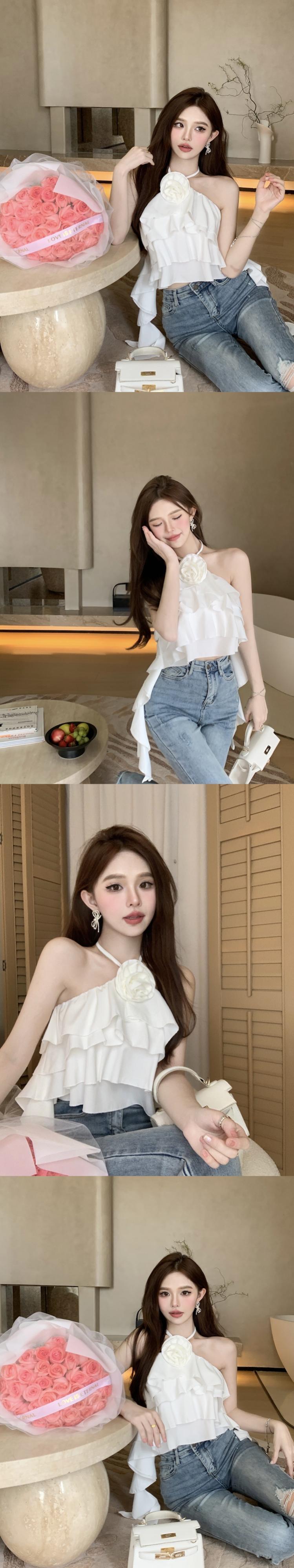 タンクトップキャミソールホルターブラウスシャツセクシースリムクロップホワイトシフォンシャツスタイルフリル
