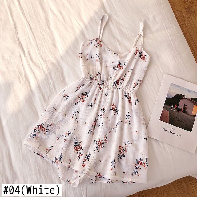 ノースリーブ花柄ジャンプスーツ夏ビーチワイドレッグオーバーオール & ボヘミアンプリントストラップロンパース サマー 夏物 ワイドパンツ