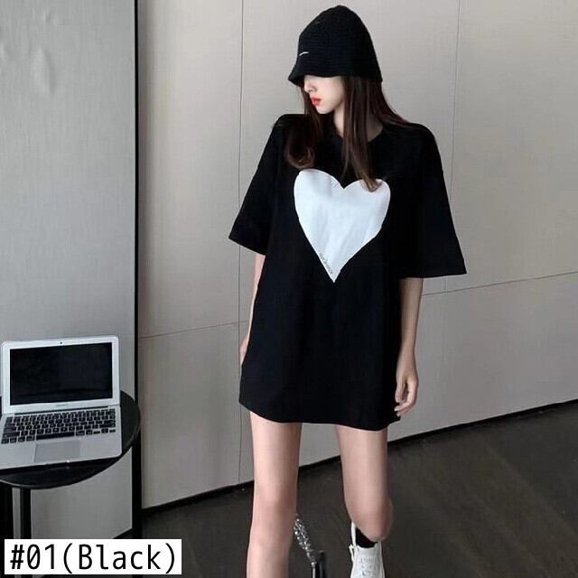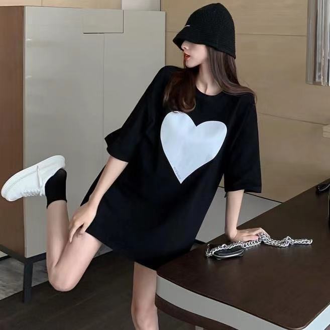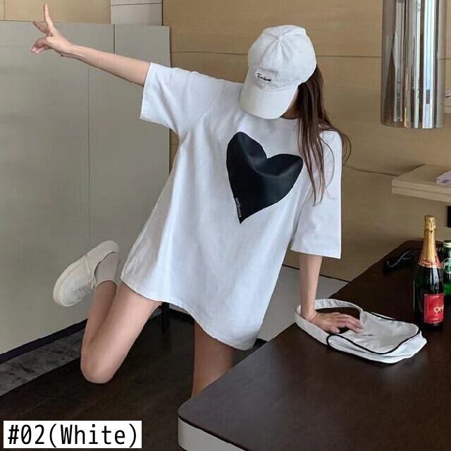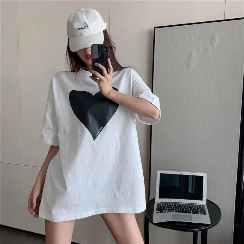 シャツグラフィック Tシャツルーズラウンドネックトップ半袖ラブ Tシャツ黒、白 Tシャツ Y2k 美的綿 ショート ホワイト ブラック コットン ハーフスリーブ Oネック