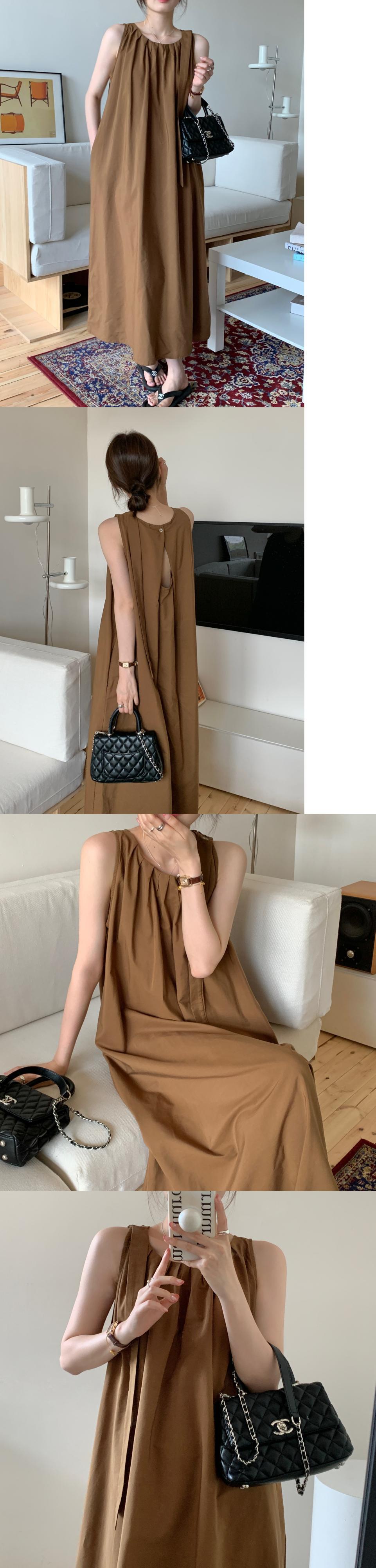 ルーズミニマリストオープンバックノースリーブドレス Vestido ベストマキシドレス夏 Y2k プリーツ サマー 夏物