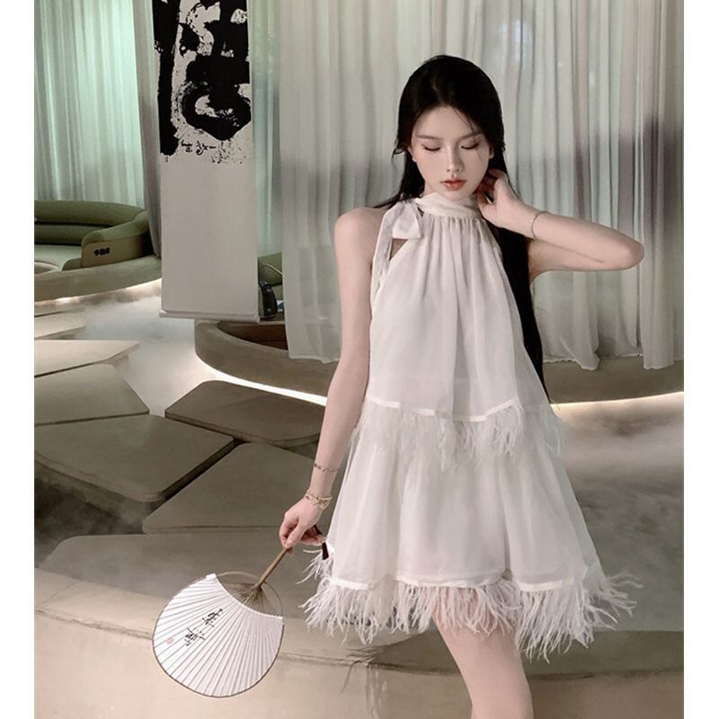 ホワイトピンクセクシーホルタールーズブラックテルズドレス Y2k Vestidos パーティーローブドレス