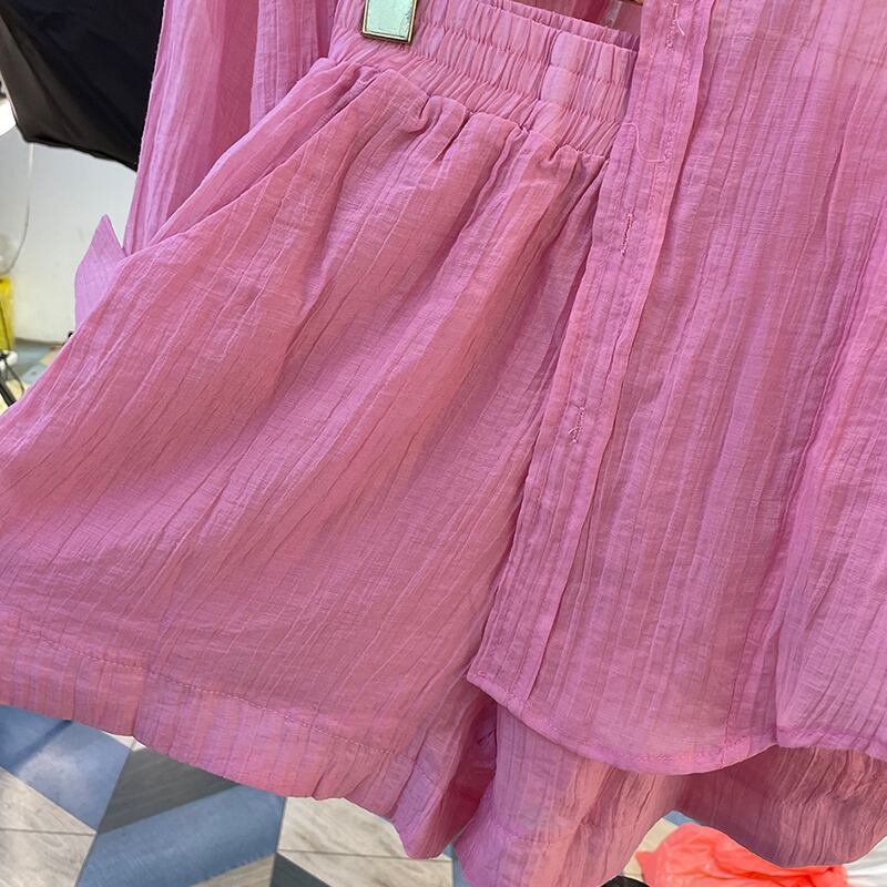 日焼け止めシャツ 2 点セットレディース衣装ルーズワイドレッグホワイトショーツセット薄手ブラウススーツ Y2k トップス ブルマー ワイドパンツ