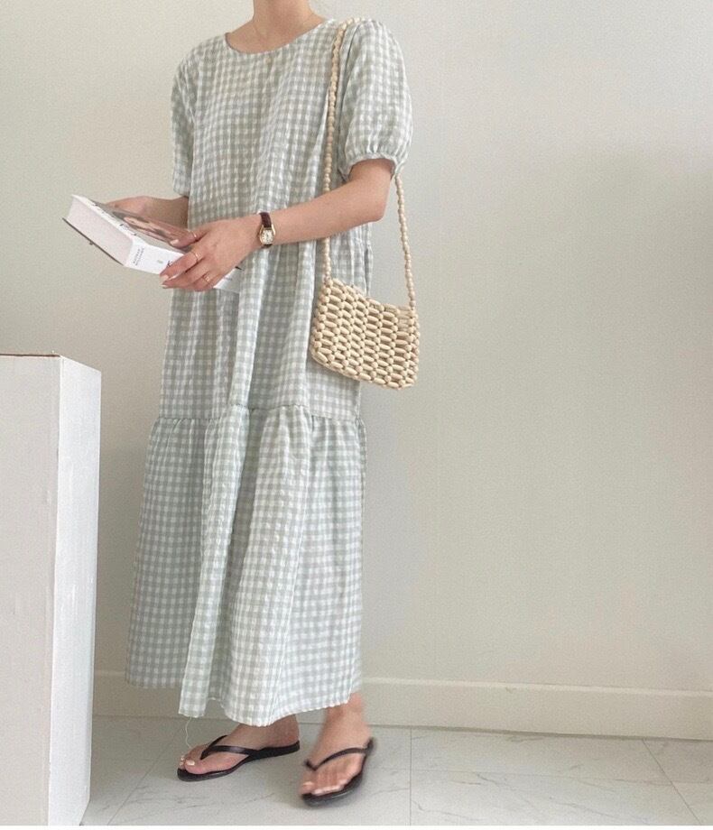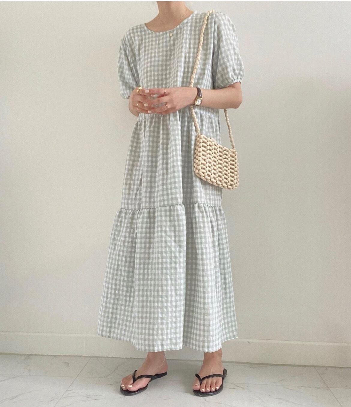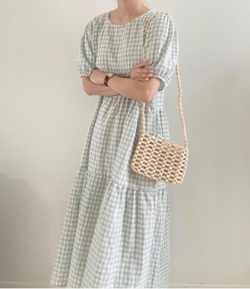 フレッシュブルーチェック柄ドレス Vestidos デエスマキシプレッピースタイルサマードレス半袖フリル Y2k ショート ハーフスリーブ 夏物