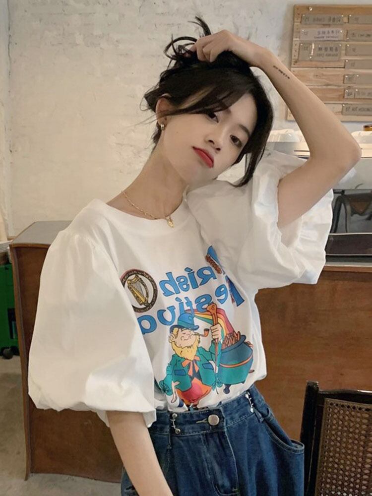 シャツ Camisetas 美的服漫画 Tシャツグランジグラフィック Tシャツ Y2k トップ白綿 Tシャツ ホワイト コットン