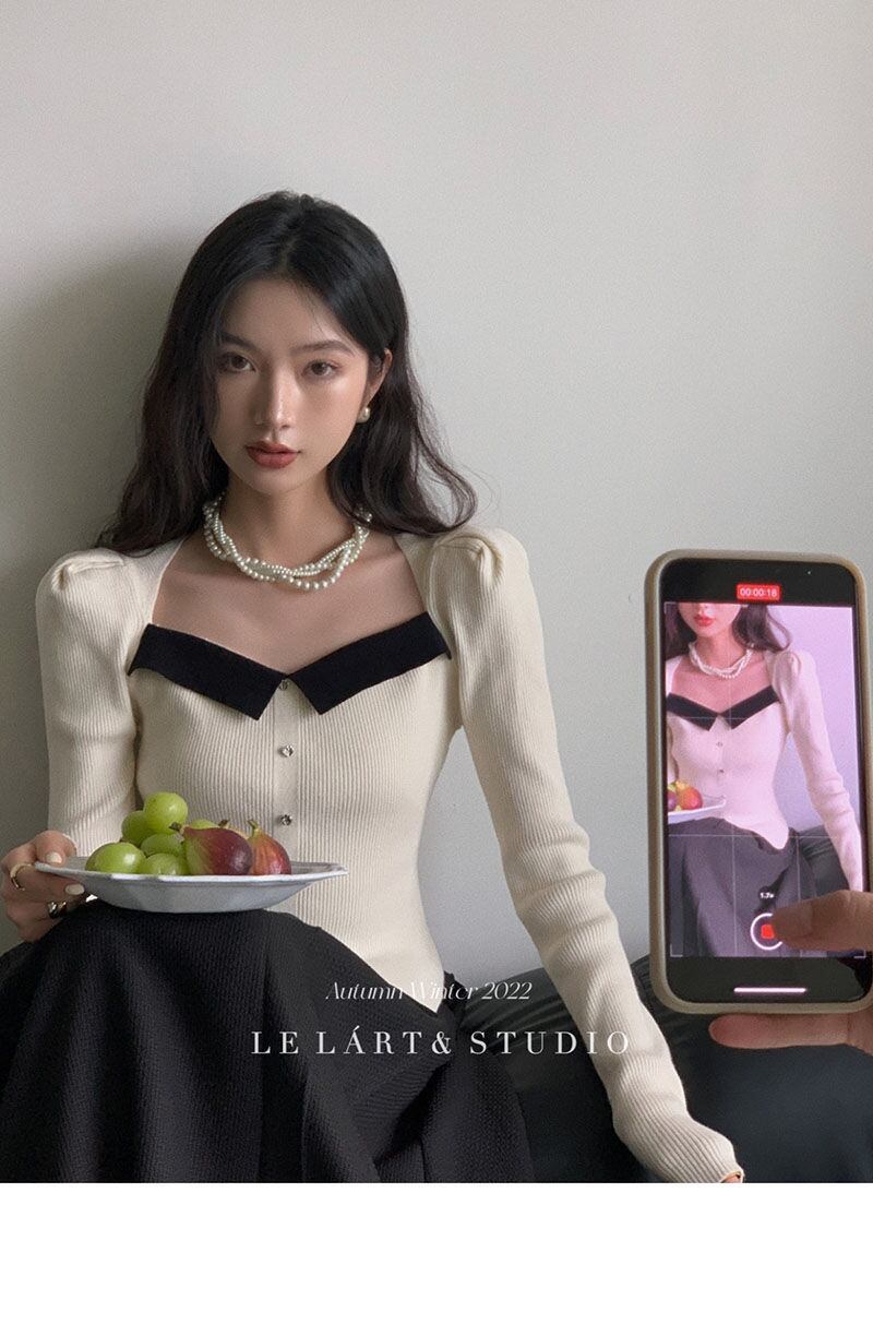 シックセーターシャツスリムスクエアクロップセータージャンパープルオーバー Y2k プルニット Tシャツ スクウェア