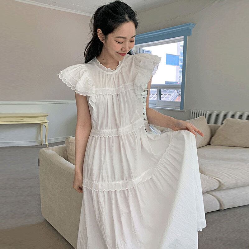 スイングレイヤードフリルフライスリーブドレス Vestidos デホワイトドールドレス Y2k センスルース レッド