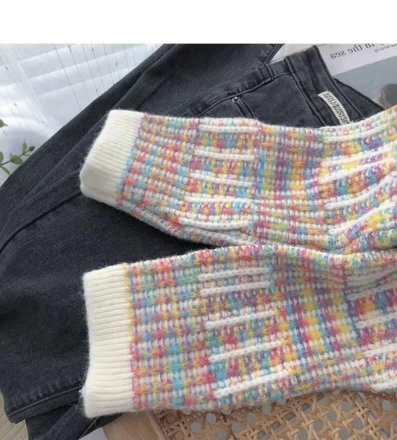 シックレインボーセーターポケットカーディガンセーターニットコートY2k服クロップドカーディガントップスプル