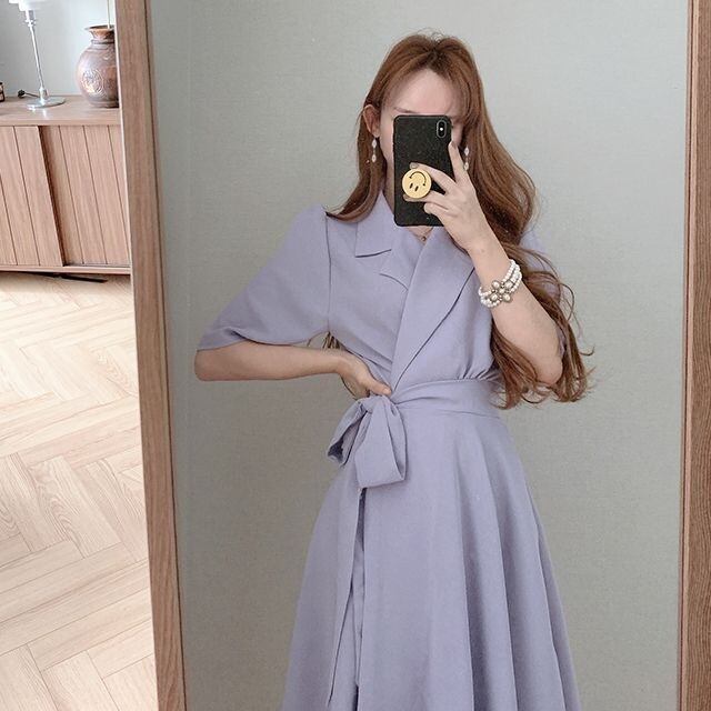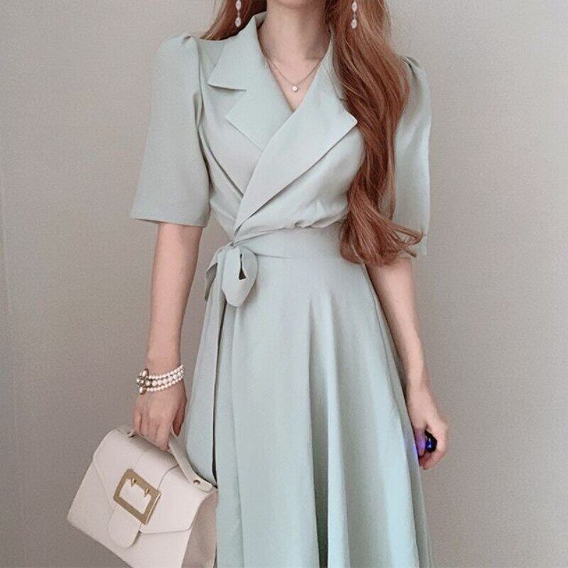 ノッチワンピースオフィスレディ Vestido レースアップパープルプリーツドレスウエストスリムローブロングブラックドレススーツ Y2k 会社 学校 通勤や通学にも