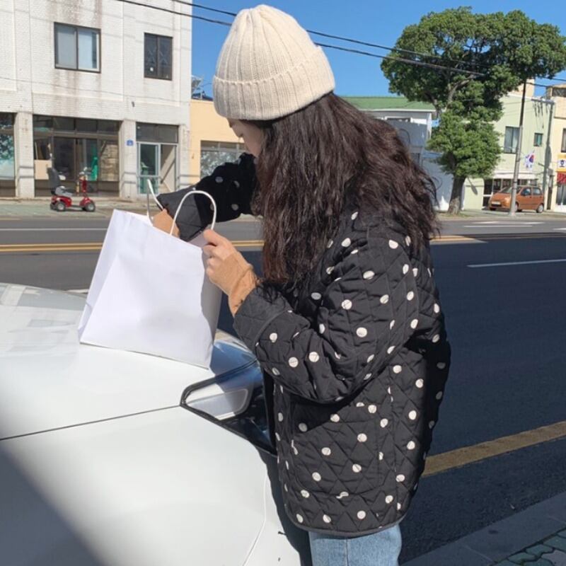 パーカーキルティング綿パッド入り冬コート服ショート黒水玉ジャケットフグ Chaquetas グランジ ブラック コットン ウィンター 冬物