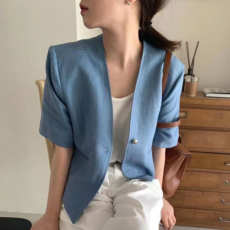 V ネック半袖デニムコートルーズシングルバックルスーツ Chaquetas パラ夏 Y2k ジャケット原宿 Jaquetas ショート ハーフスリーブ かわいい サマー 夏物