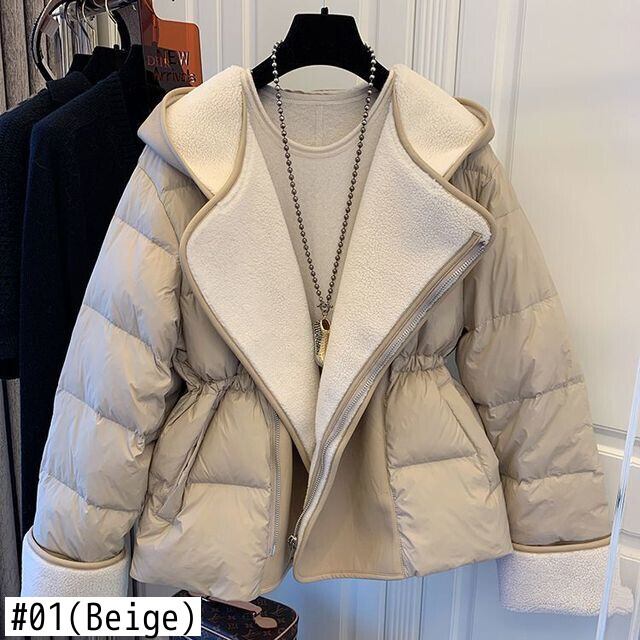 ラムファーブラックレザージャケットスリムウエスト冬コートパーカー Chaquetas ジッパージャケットフード付きフグ服 ウィンター 冬物