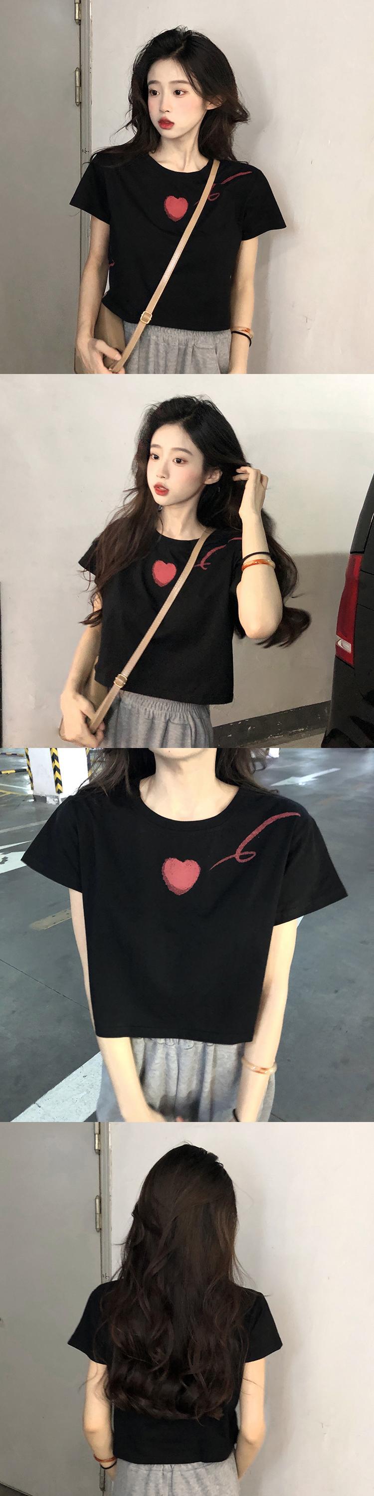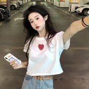 ルーズコットンショルダー半袖 Tシャツ愛グランジグラフィック Tシャツ Y2k トップ服 Tシャツ美的 Tシャツ ショート ハーフスリーブ
