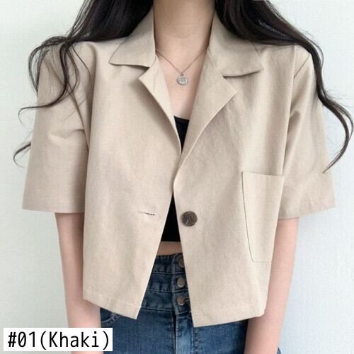 トップス カーキ カーディガン ソリッド 半袖 シャツ シャツ レディース ブラック スーツ ブレザー ショート ハーフスリーブ ソリッドカラー