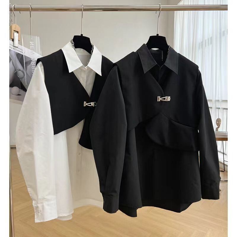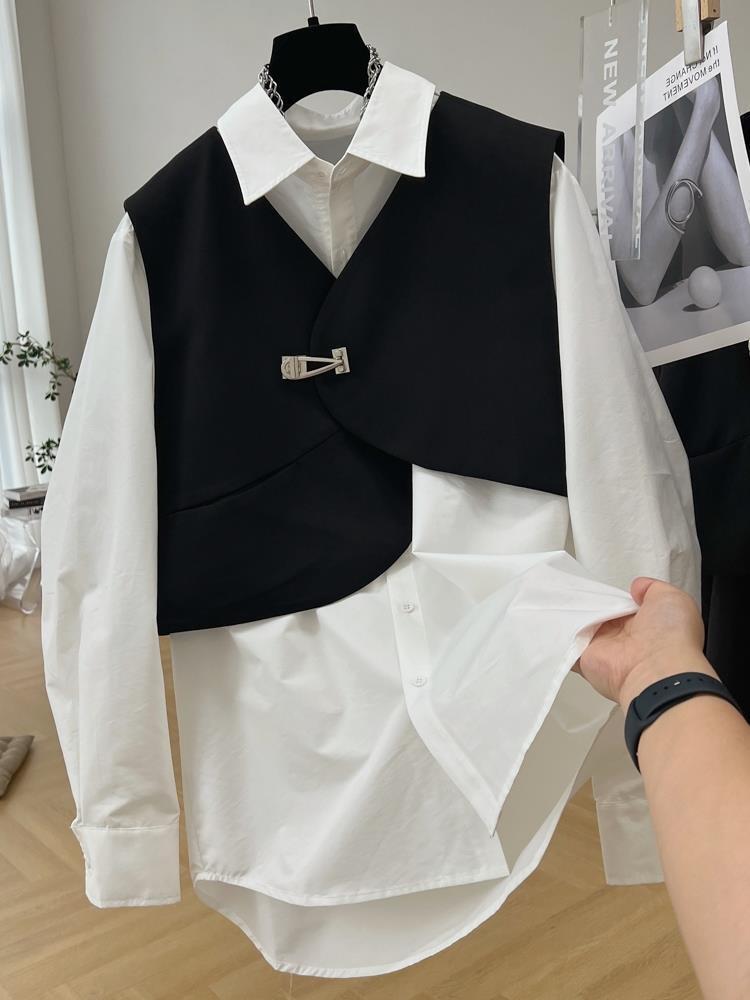 シャツ衣装ルーズホワイト長袖ブラウスベストジャケットスーツ 2 点セット Roupas Y2k セット ロング