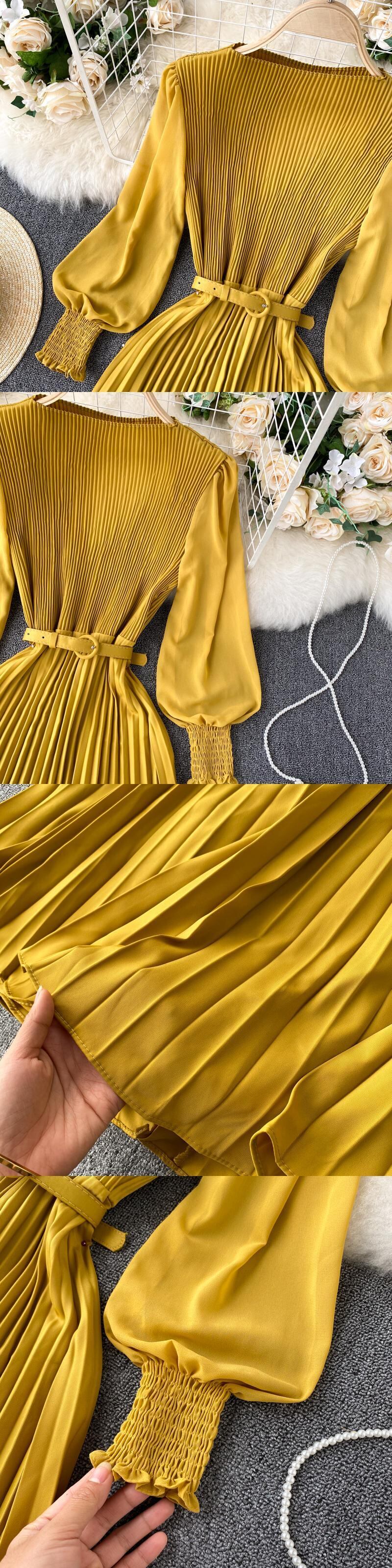 センススリムスタイル春フレンチロングプリーツドレスニットマキシドレスルーズローブ Vestidos スプリング 春物